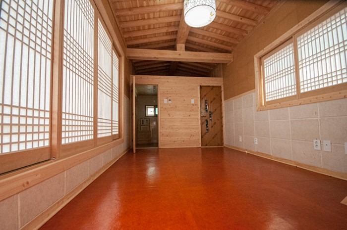찜질방 내부 뒷편에 2중창.분리난방+벽난방=바닥에는 콩댐한지마감으로~