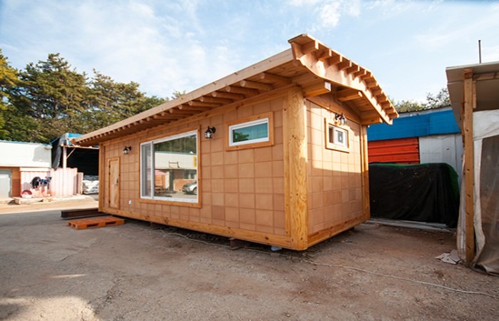 출입문은 키박스를 조립한 목제문으로=}전면창은 한실문에 영림창호 22mm창문을 아주 크게~